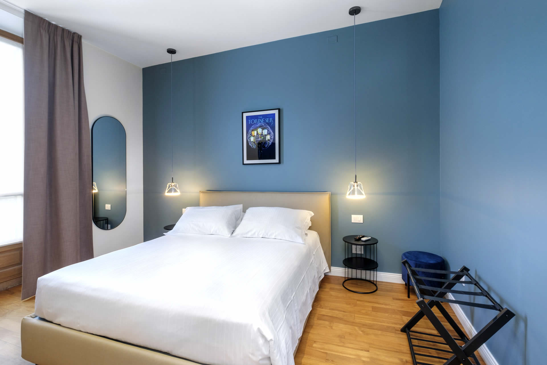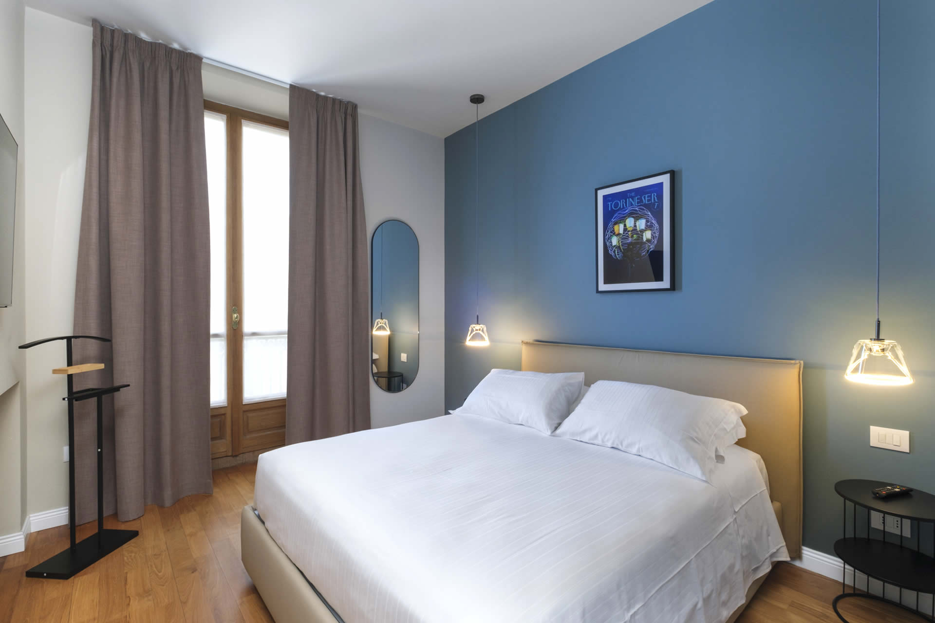 La Suite Carlo Felice è pensata per chi desidera spazi generosi e raffinati, capaci di unire comfort e intimità. L'appartamento si compone di una luminosa camera da letto dallo stile elegante e di un accogliente salotto con divano letto, ideale per momenti di relax o per ospitare con discrezione fino a quattro persone.